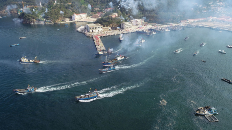9月1日,第五届中国海洋岛渔场开渔节上,渔船驶向大海。