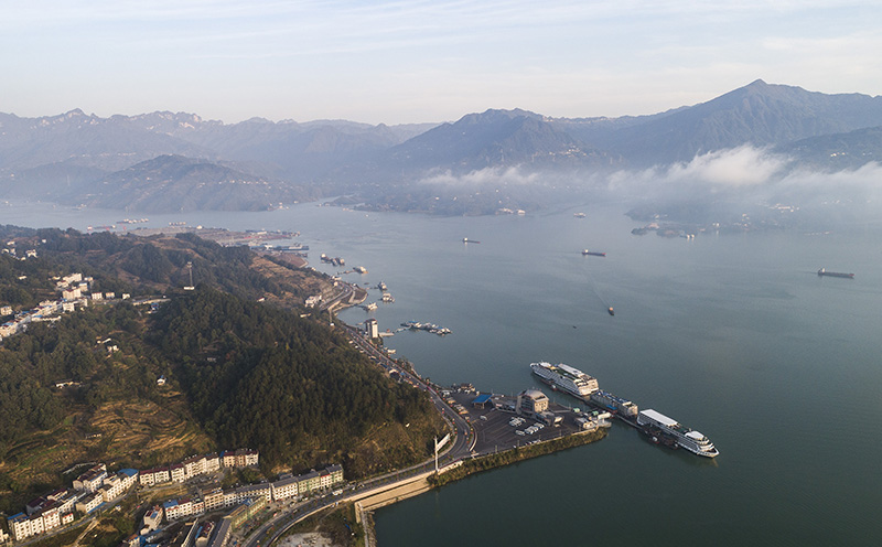 蓄水后的湖北省秭归县秭归港(10月31日无人机拍摄)。