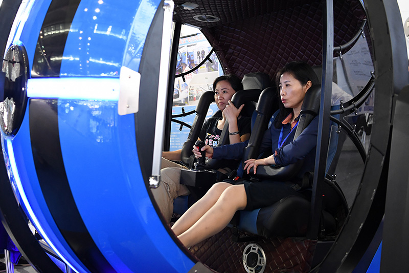 11月13日,观众在第二十一届高交会上体验“航空飞行”。