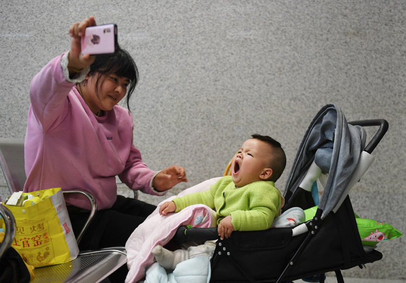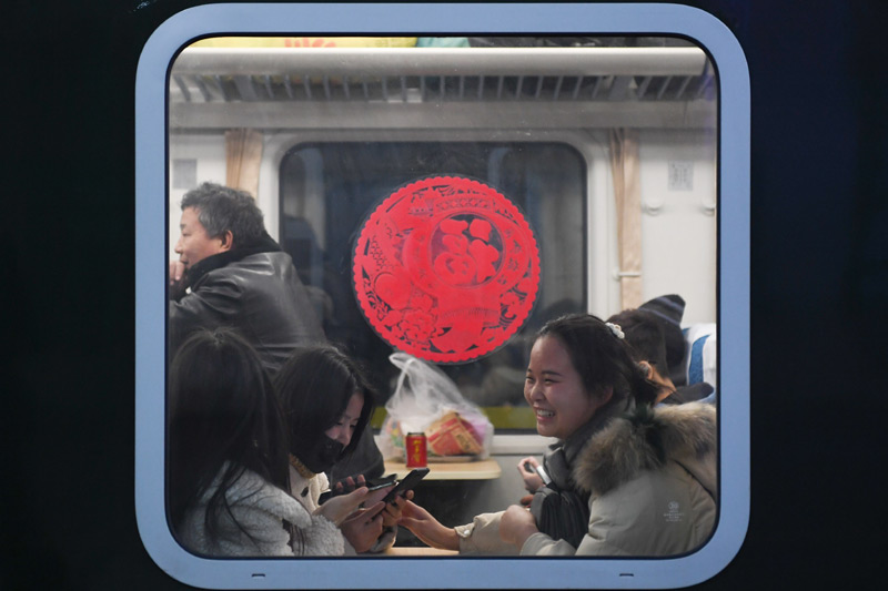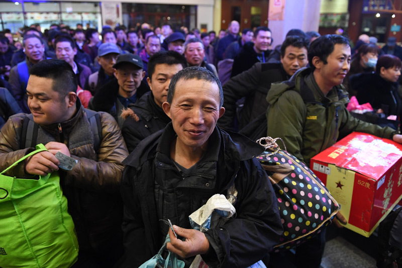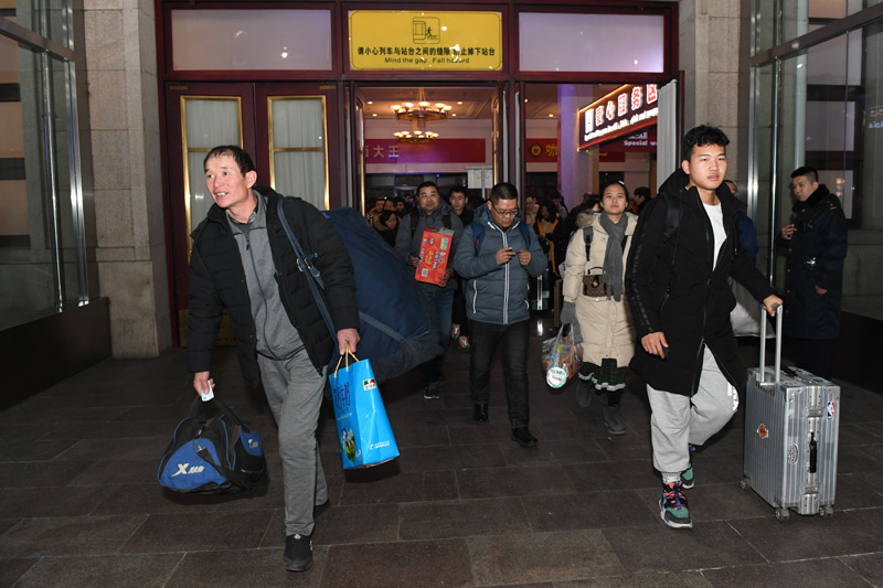 1月10日,在北京火车站,乘坐K4051次列车的旅客等候开车。