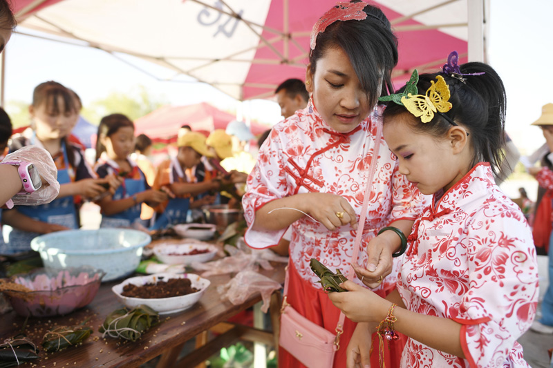当日,全国最大的易地生态移民扶贫集中安置区宁夏吴忠市红寺堡区举行迎端午活动,邀请各乡镇的民间剪纸、刺绣艺人现场比拼传统技艺,居民现场参与包粽子大赛,共迎端午节的到来。