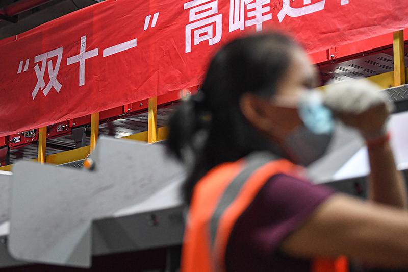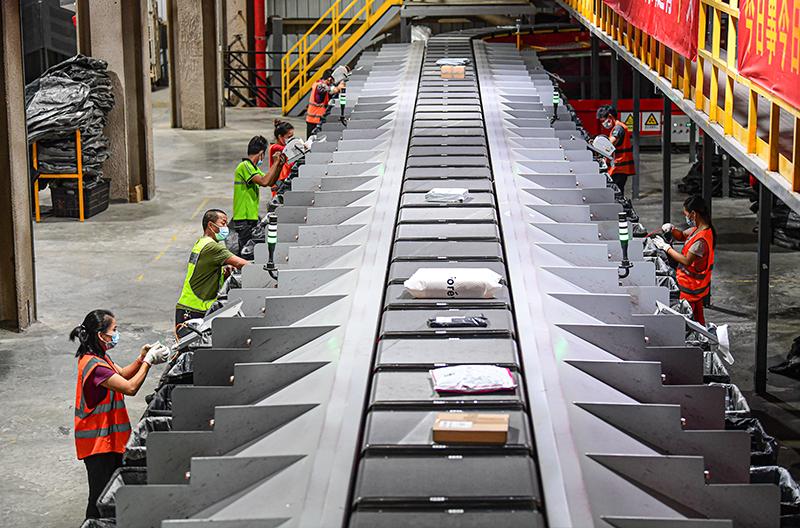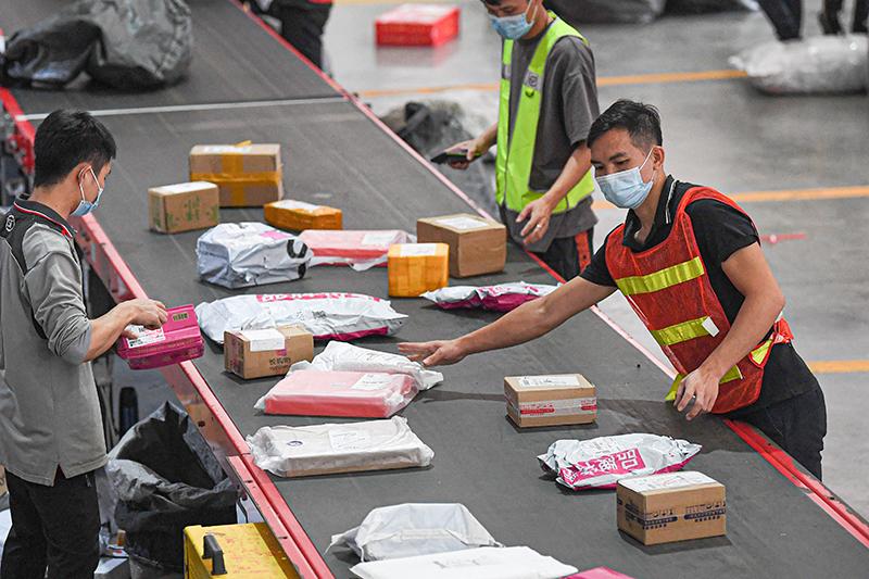 临近“双十一”,位于海口的顺丰速运海口美兰中转场一片繁忙景象。工作人员借助分拣设备,抓紧时间分拣、打包快递,保障快递在“双十一”物流高峰期间正常流转。
