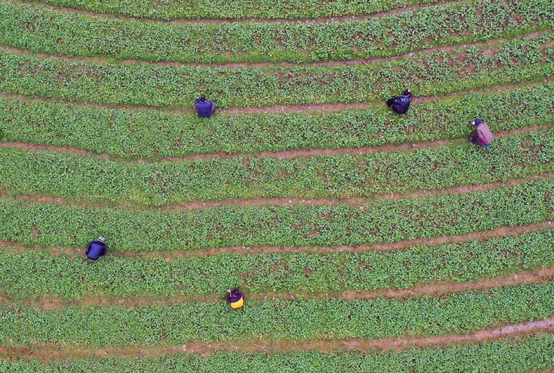 小寒节气将至,各地农民忙着进行作物管护、采收等。