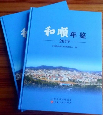2019年12月,《和顺年鉴(2019)》由山西出版传媒集团、山西人民出版社出版,这是党的十九大以来和顺县出版的第一部综合年鉴。该书由中共和顺县委、和顺县人民政府主编,和顺县史志研究室承编,共设20个类目,总字数46万字。2019年2月启动,经7个月编纂,10月份送审,11月份定稿付印。该书客观地记录和顺县2018年的发展情况,为各级领导了解县情、科学决策,为各行业各部门查询资料、获取信息,为客商及社会各界人士投资和顺、认识和顺提供了详实的资料。