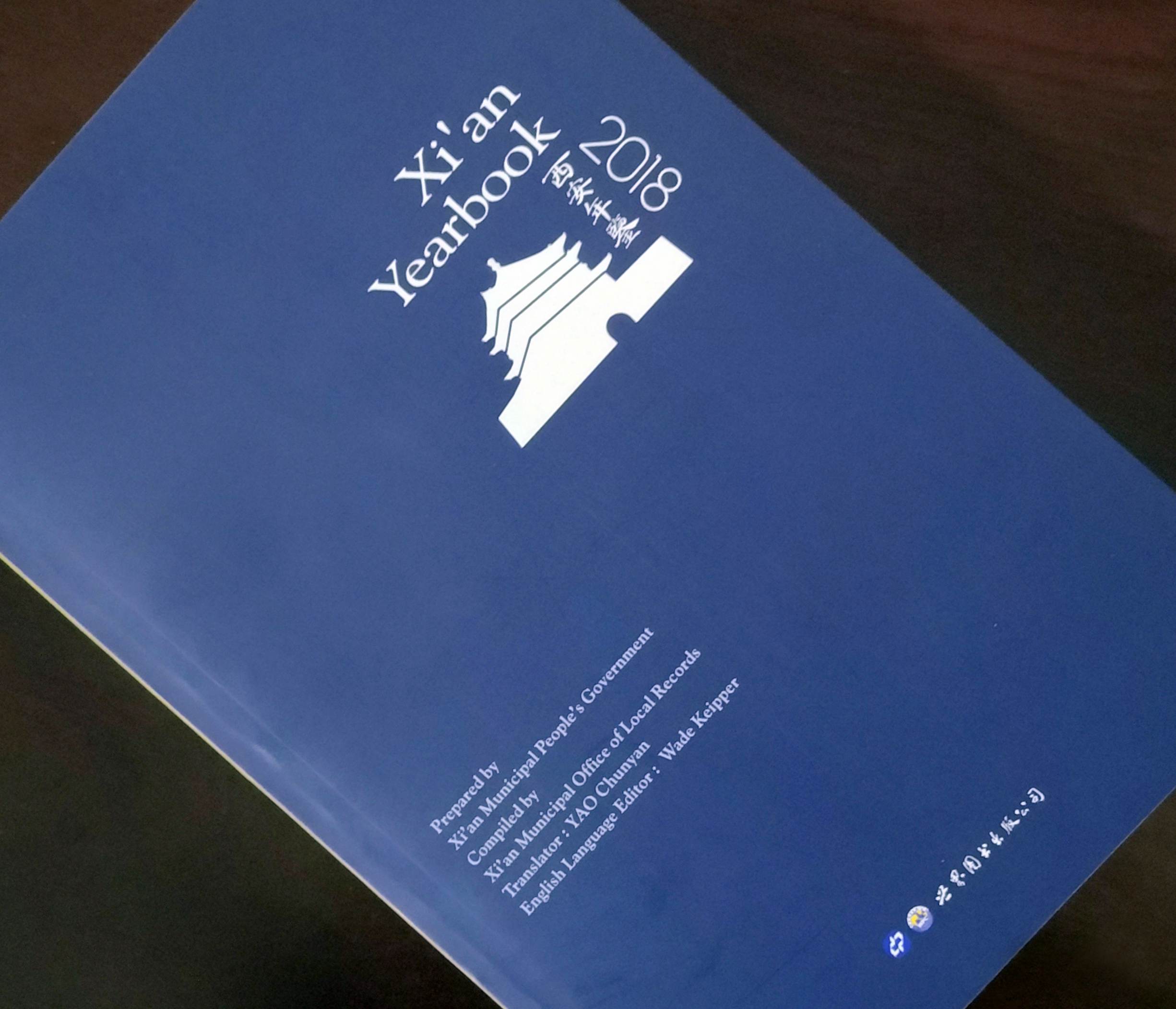 2019年12月,由西安市人民政府主办、西安市地方志办公室编纂的《西安年鉴(2018英文版)》出版发行。《西安年鉴(2018英文版)》由世界图书出版西安有限公司出版,为32开本,中文字符约15万字,并有彩页8面,共有概貌类、产业类、附录类等18个类目。《西安年鉴(2018英文版)》在浓缩选取《西安年鉴(2018)》中西安年度经济社会发展重点、亮点内容的基础上,增加“西安档案”“西安名片”“特色西安”“印象西安”等特色栏目,进一步提高年鉴的可读性和实用性,为海外人士了解西安提供基本信息,为对外宣传西安、推介西安提供基本资料。