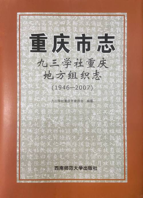 2019年12月,《重庆市志·九三学社重庆地方组织志(1946—2007)》由西南师范大学出版社正式出版发行,这是九三学社重庆地方组织有史以来第一部志书。编纂人员在深入走访重庆九三学社事业发展亲历者、知情者的基础上,广泛搜集整理史料,数易其稿,历经十年完成编纂出版。