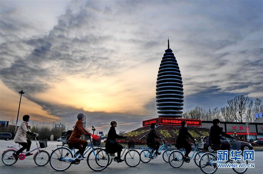 市民在河北雄安新区容城县县城道路上骑行(3月29日摄)。 新华社记者 牟宇 摄